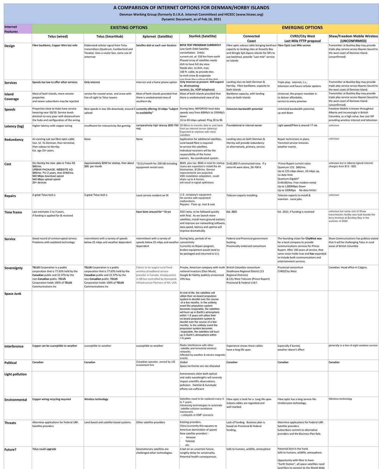 This includes the existing copper wiring infrastructure, the opportunities associated with high speed fibre optic service, satelitte dish (e.g. Xplornet), Telus Smart Hub, and low earth orbit Satelite constellations (e.g. Starlink)